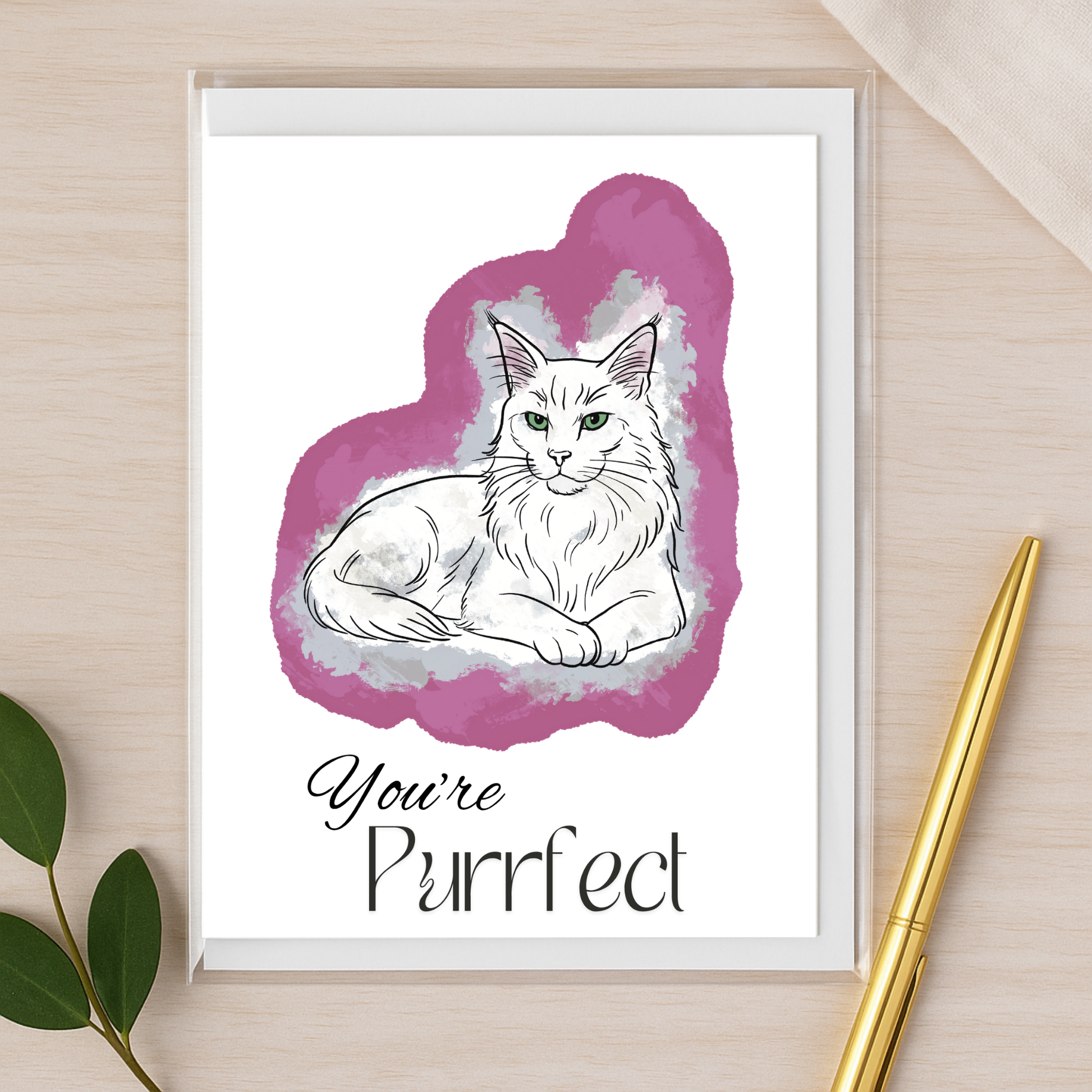 The 😹 😎 You'Re Purrfect - Notecard Energy notecard brings humor and art straight into the clinic. Perfect for those moments when only a vet inside joke or a bit of levity will do. Printed on A2 cardstock (4.25” x 5.5”), blank inside, ready for your words.